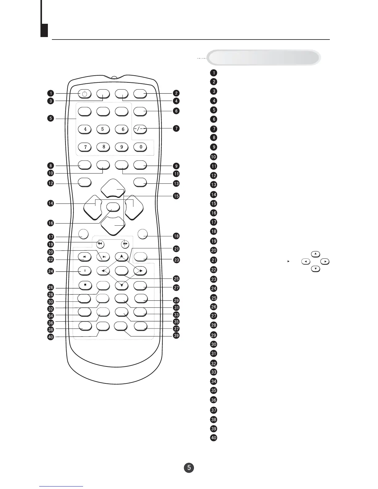 Buttons on the remote control