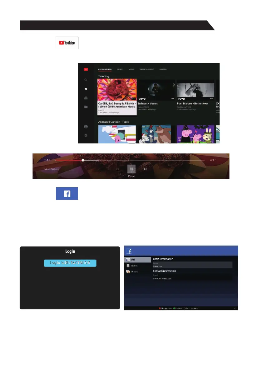 Œ Use arrow key to select facebook icon, then press “ENTER” key to enter Facebook.