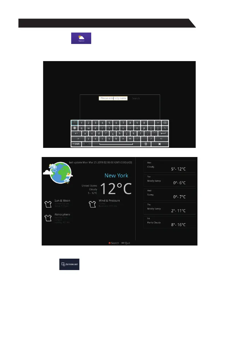 Œ Use arrow key to select Yahoo weather icon, then press “ENTER” key to enter YAHOO weather.