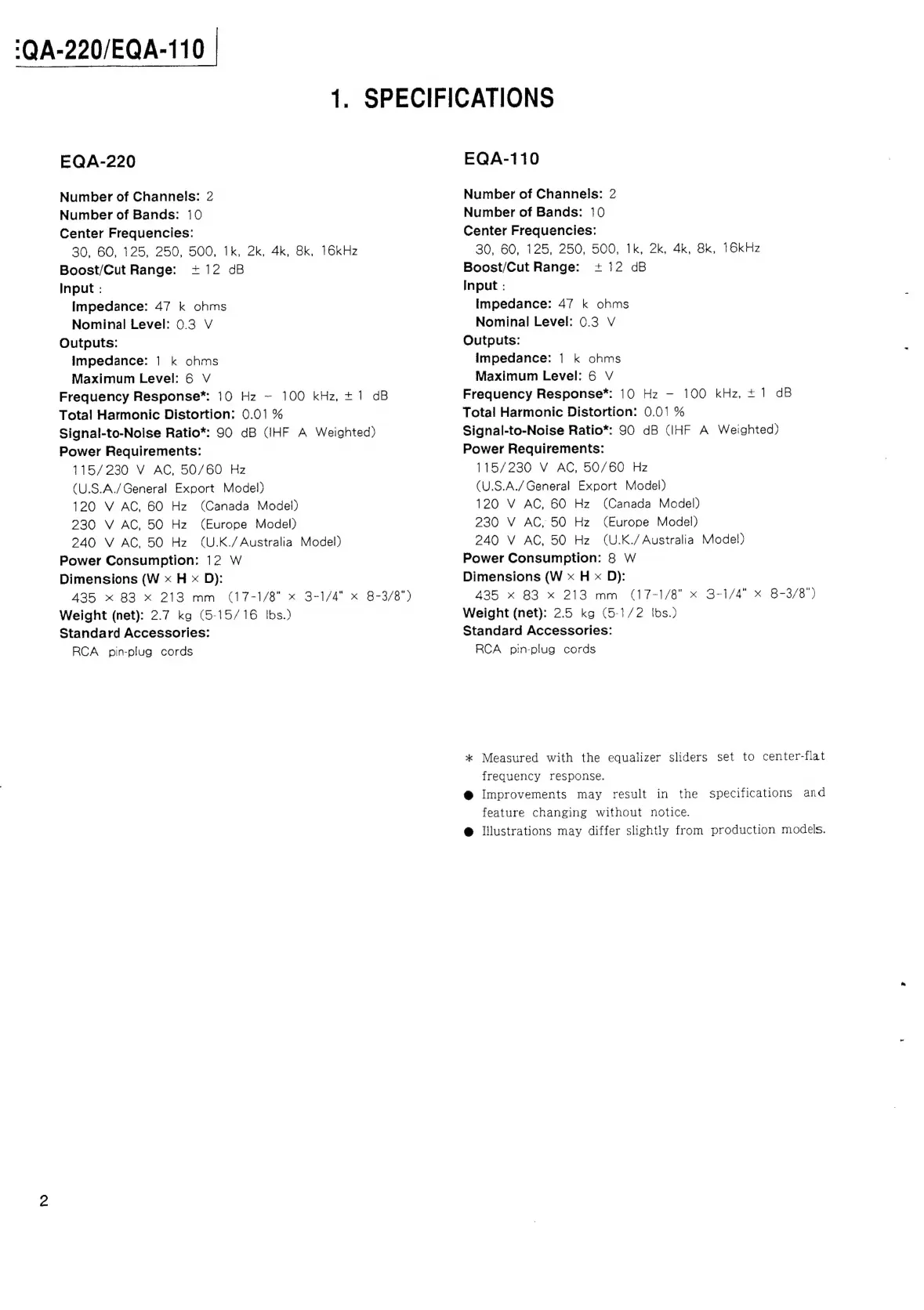 Teac EQA-220 - Product Specifications; EQA-220 Specifications; EQA-110 Specifications