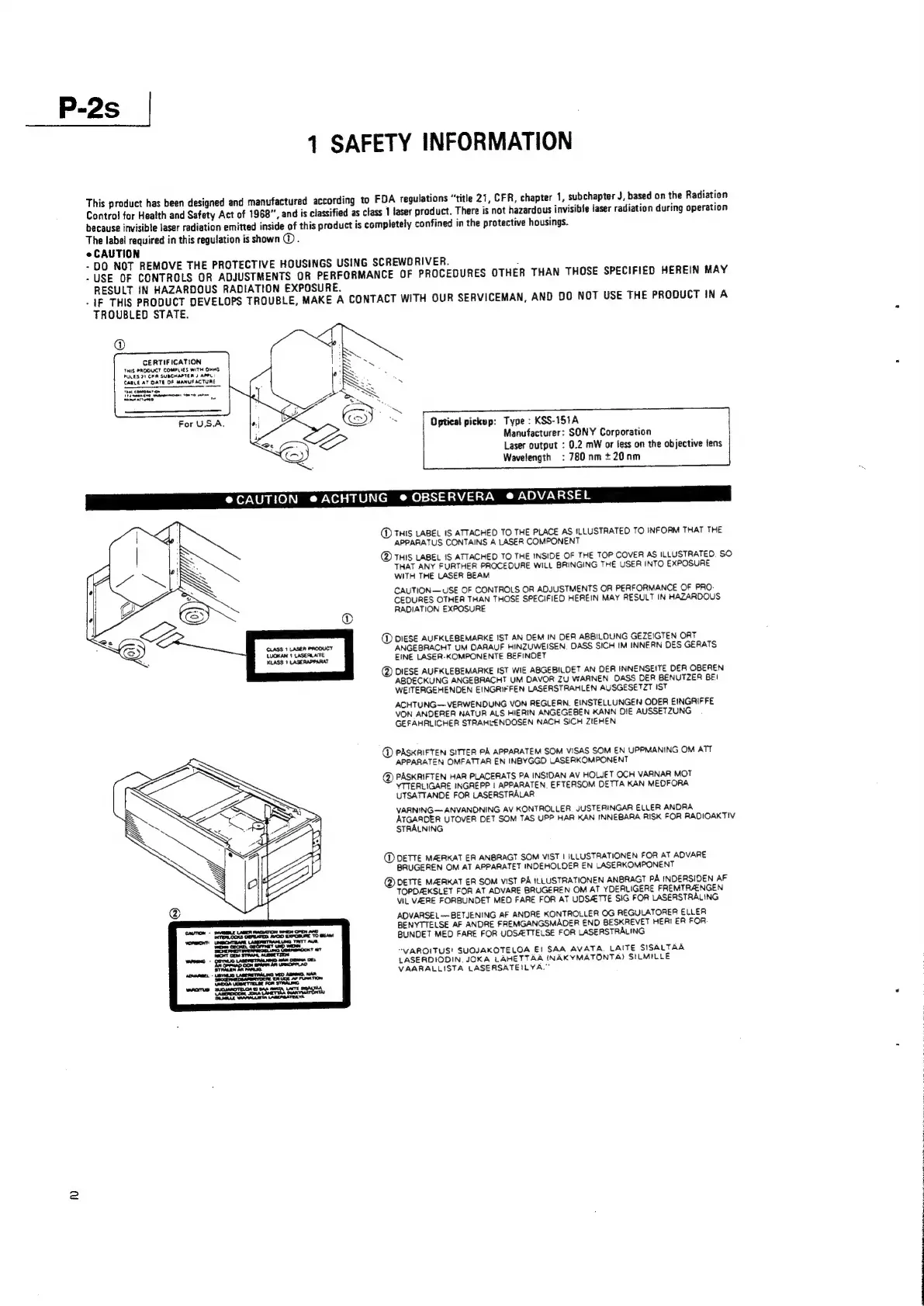 Teac ESOTERIC P-2S - 1 SAFETY INFORMATION; General Safety and Laser Precautions