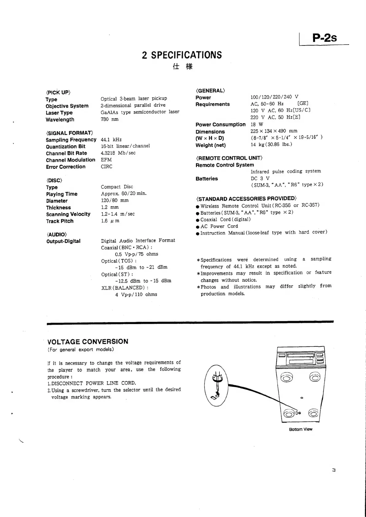 Teac ESOTERIC P-2S - 2 SPECIFICATIONS; Voltage Conversion