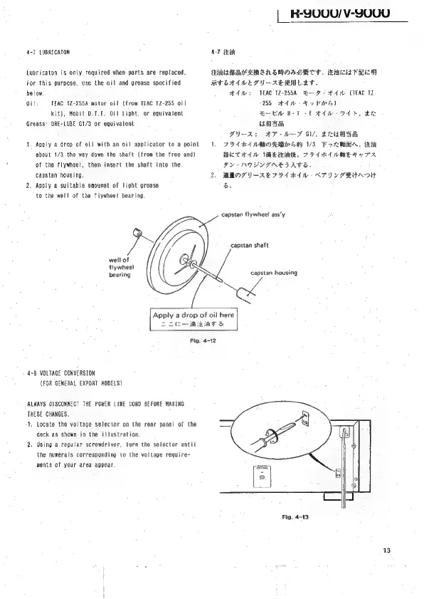 Teac Esoteric R-9000 - Lubrication; Lubrication Procedure; Voltage Conversion; Voltage Selector Adjustment
