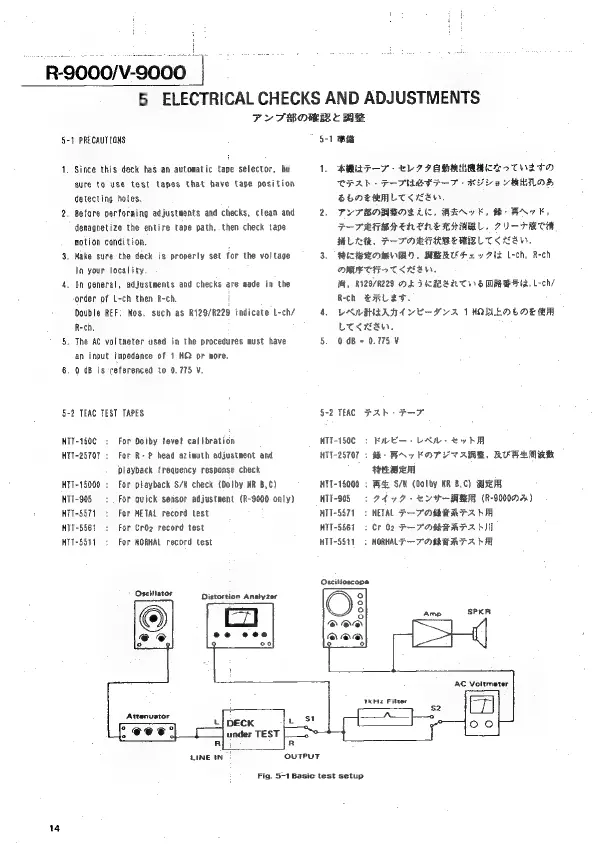 Teac Esoteric R-9000 - Electrical Checks and Adjustments; Service Precautions; TEAC Test Tapes