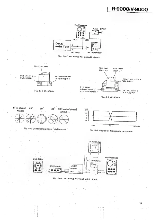 Teac Esoteric R-9000 - Test Setup for Azimuth Check; Phase Relationship Confirmation; Playback Frequency Response Graph; Test Point Check Setup
