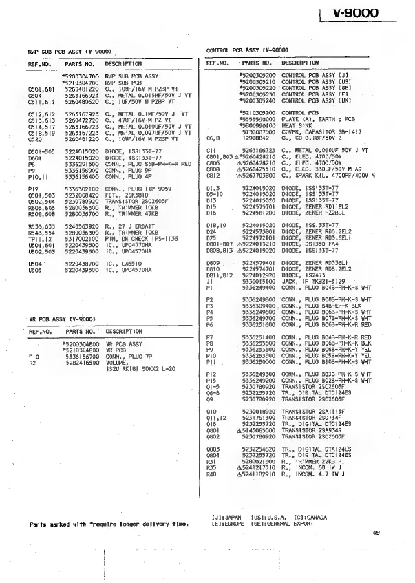 Teac Esoteric R-9000 - R;P Sub PCB Assy Parts List (V-9000); Control PCB Assy Parts List (V-9000); VR PCB Assy Parts List (V-9000)
