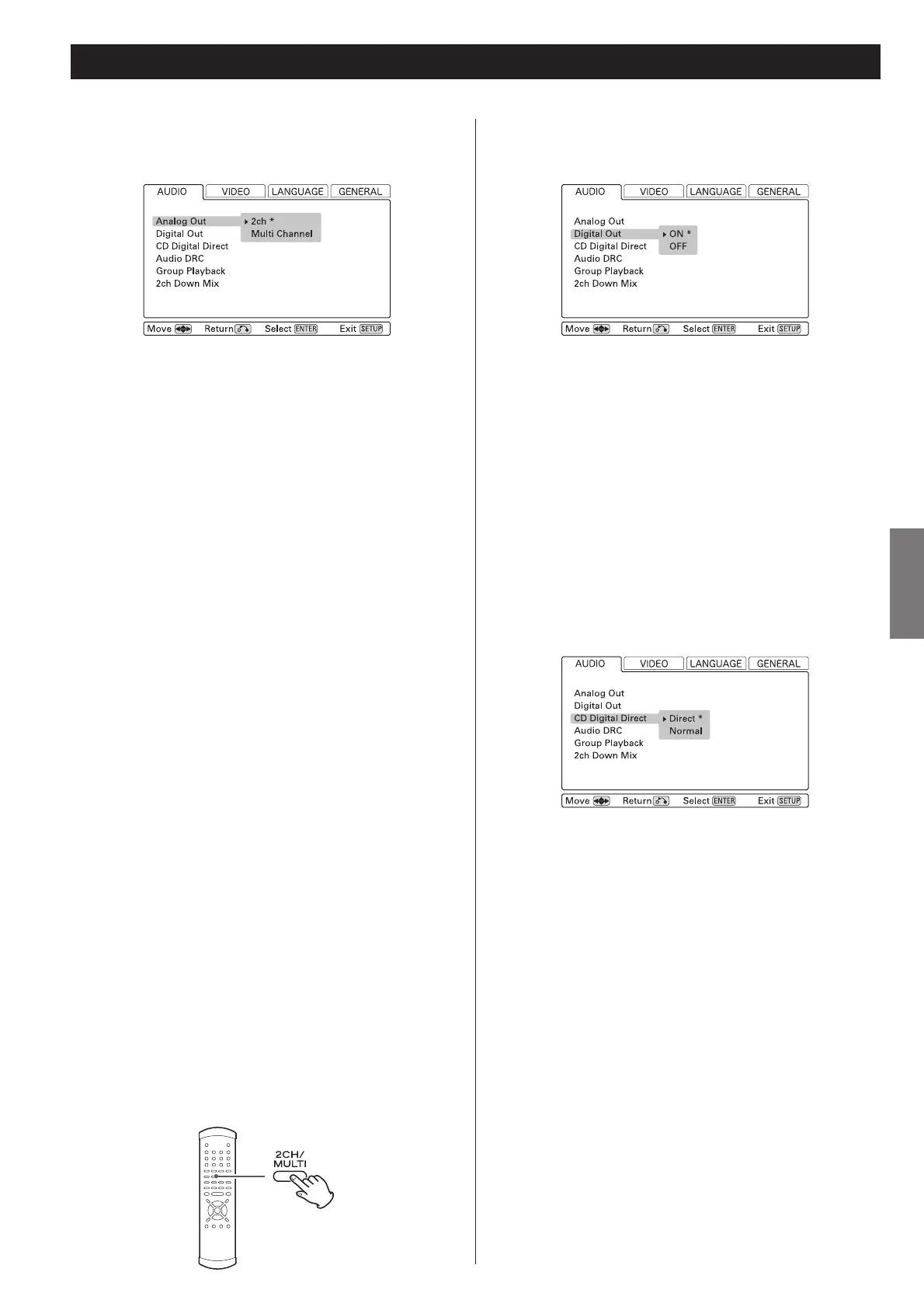 Vous pouvez utiliser la touche 2CH/MULTI de la