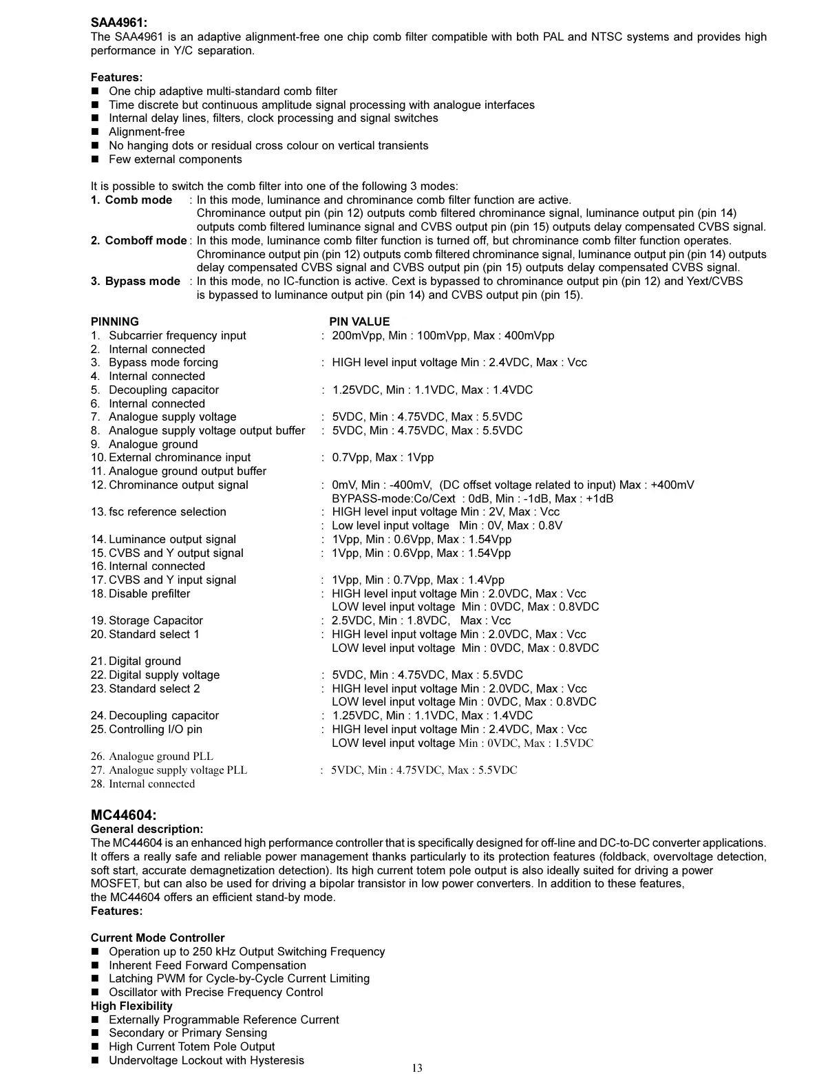 3. Bypass mode : In this mode, no IC-function is active. Cext is bypassed to chrominance output pin (pin 12) and Yext/CVBS
