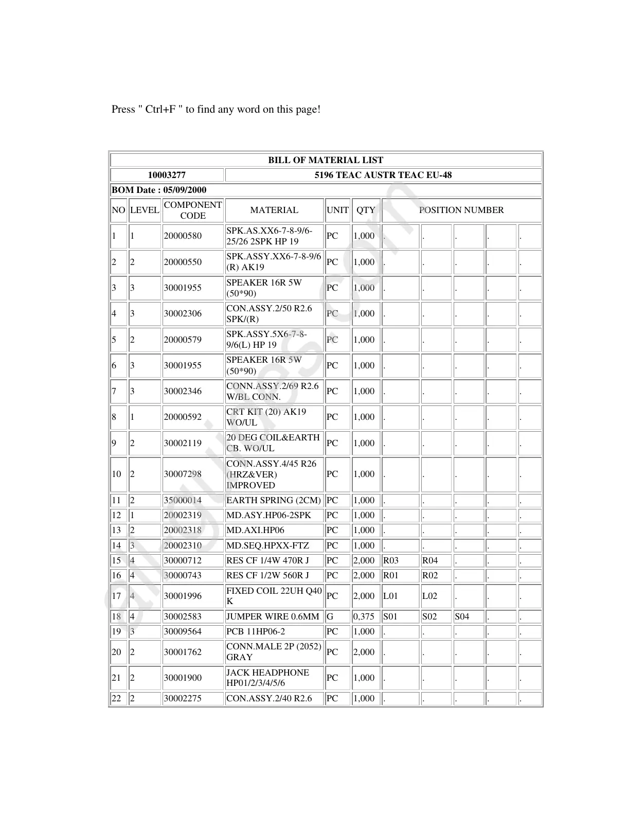 12 1 20002319 MD.ASY.HP06-2SPK PC 1,000 . . . . .