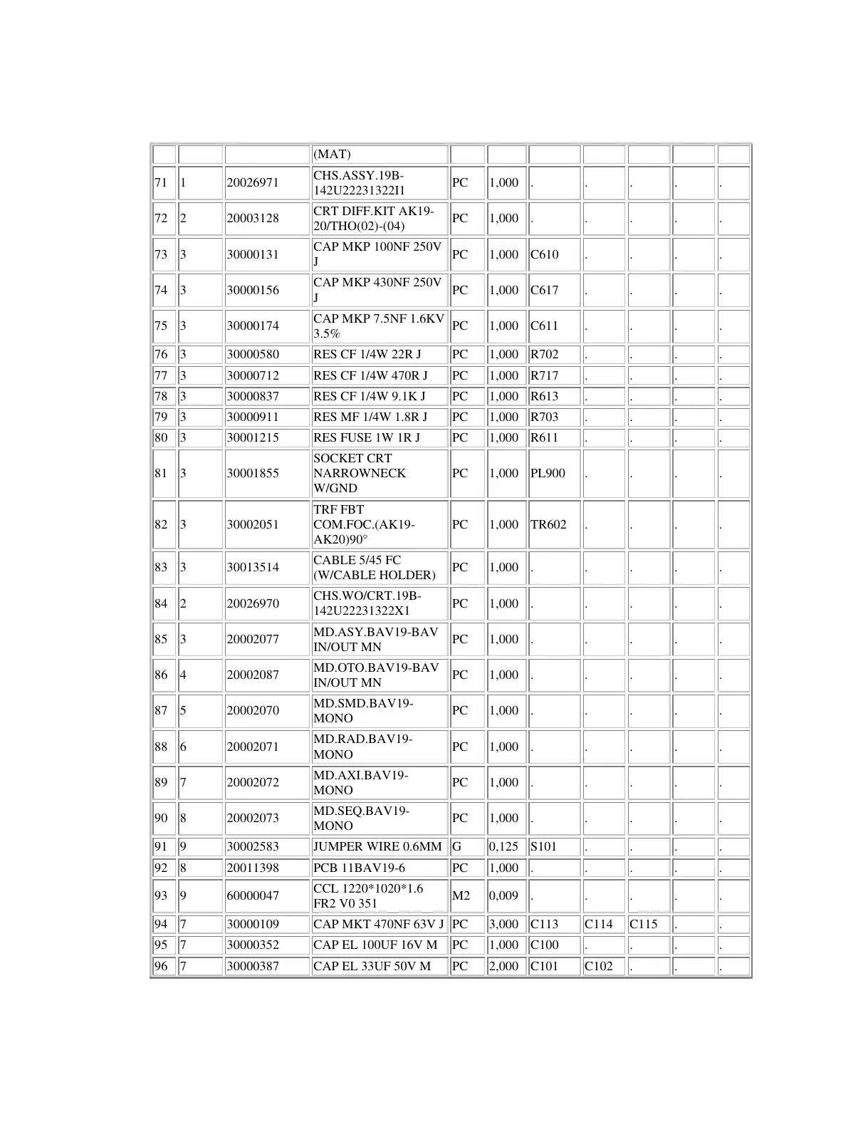 92 8 20011398 PCB 11BAV19-6 PC 1,000 . . . . .