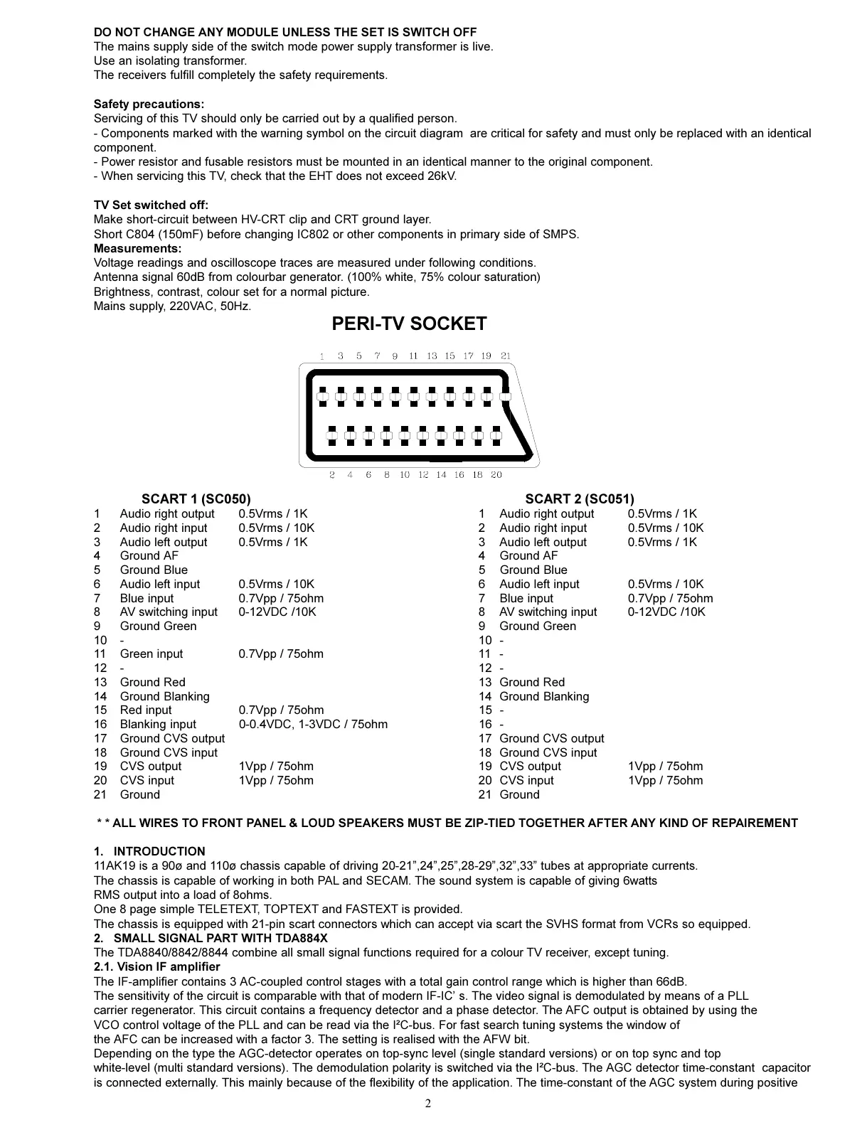 The chassis is capable of working in both PAL and SECAM. The sound system is capable of giving 6watts