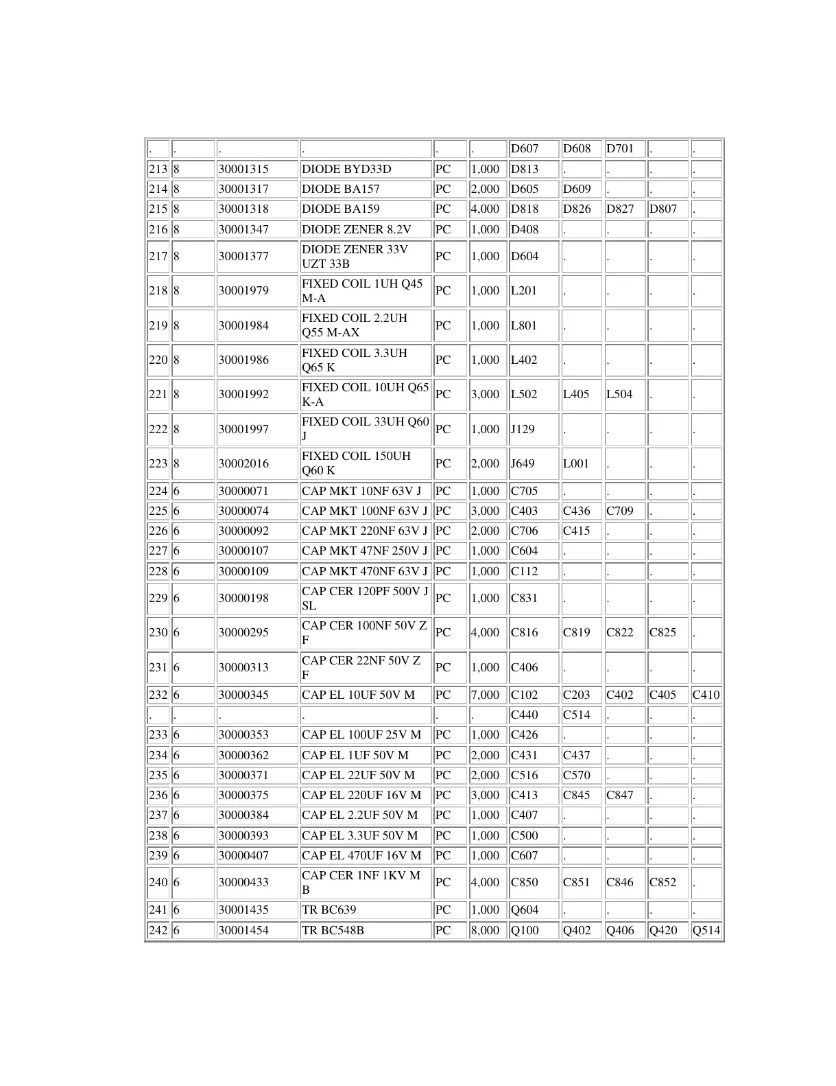 8 30001317 DIODE BA157 PC 2,000 D605 D609 . . .
