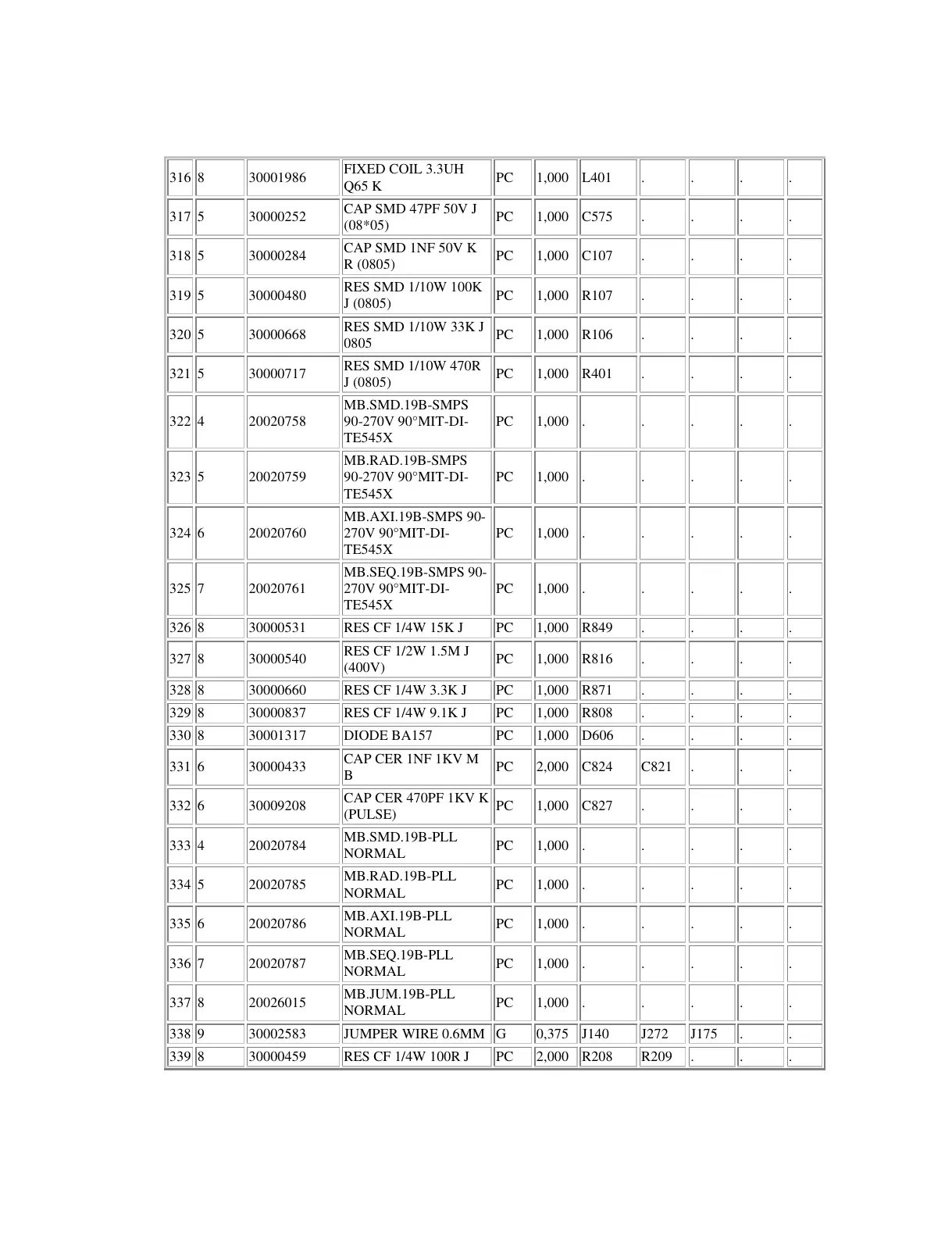 8 30000837 RES CF 1/4W 9.1K J PC 1,000 R808 . . . .