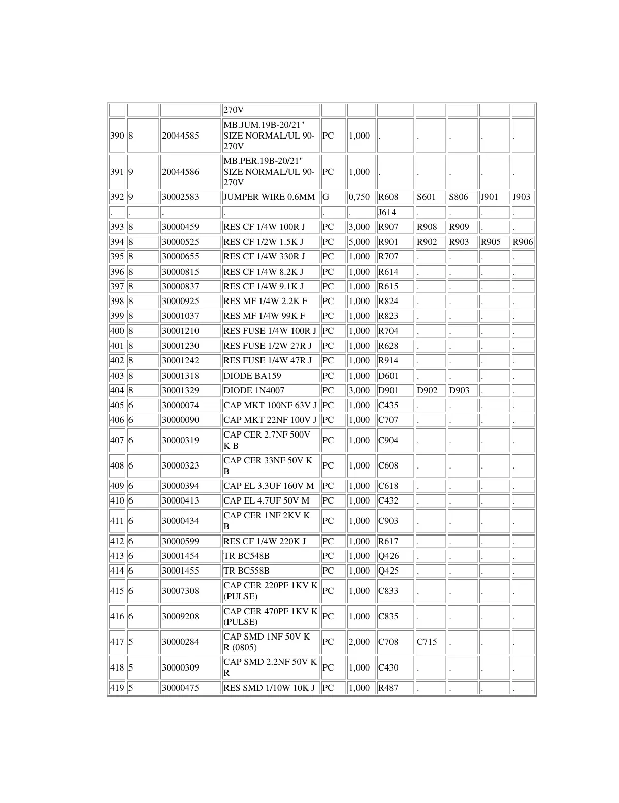 8 30001037 RES MF 1/4W 99K F PC 1,000 R823 . . . .