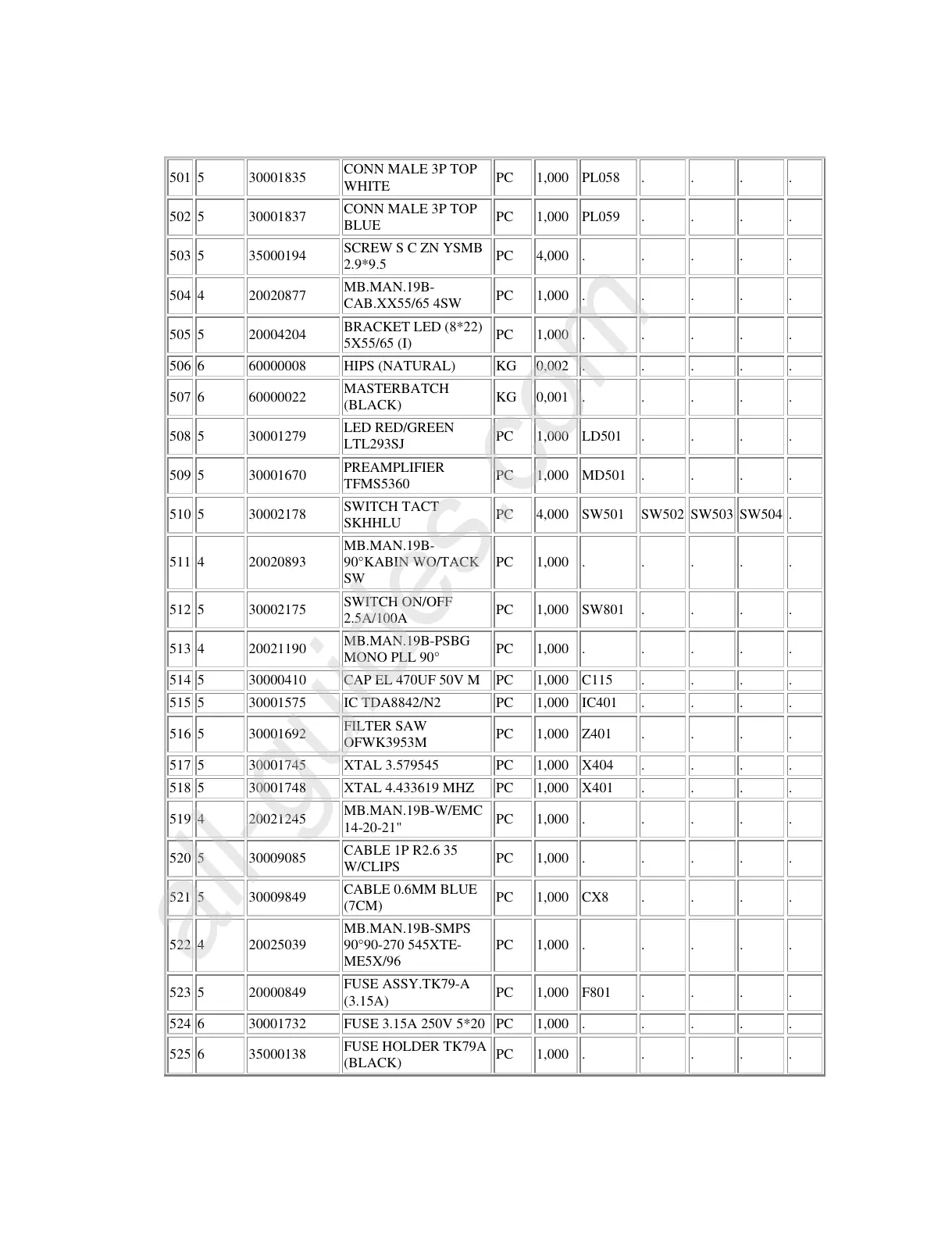 5 30001745 XTAL 3.579545 PC 1,000 X404 . . . .