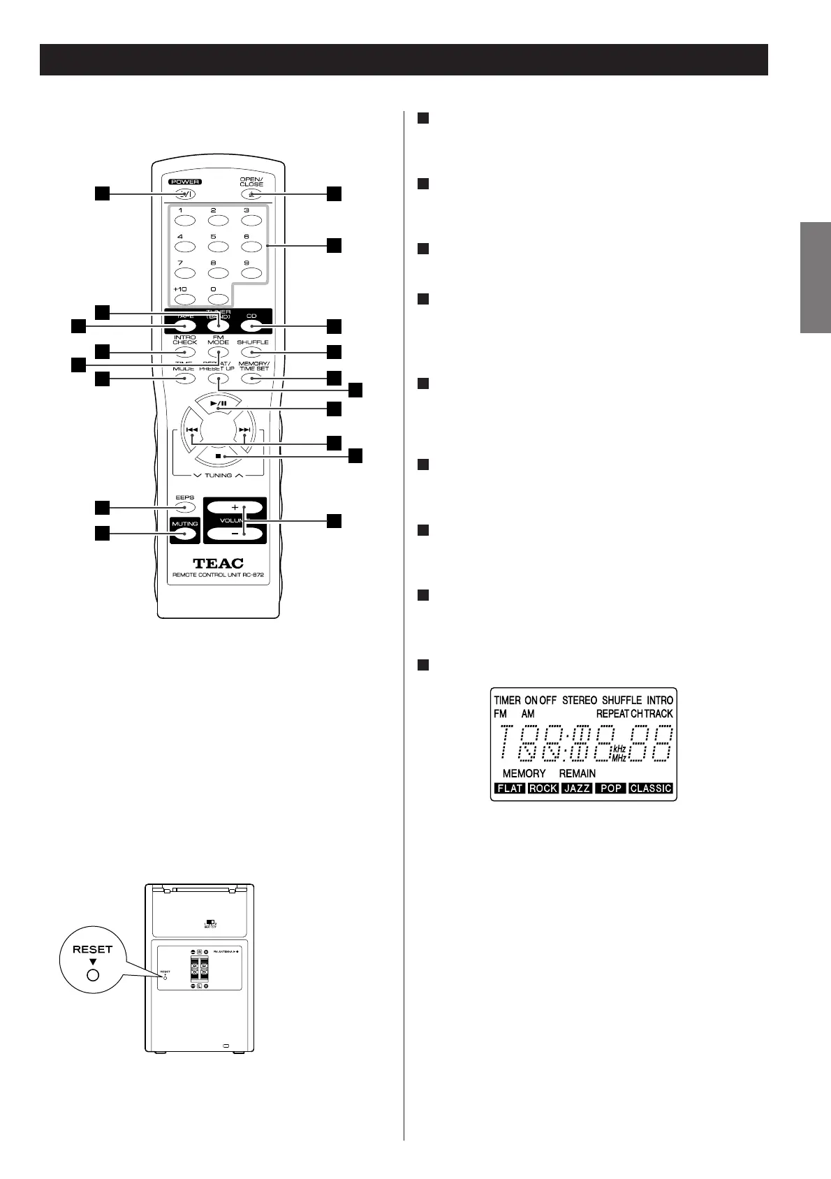 “REPEAT” s’allume quand un CD est en lecture répétée.