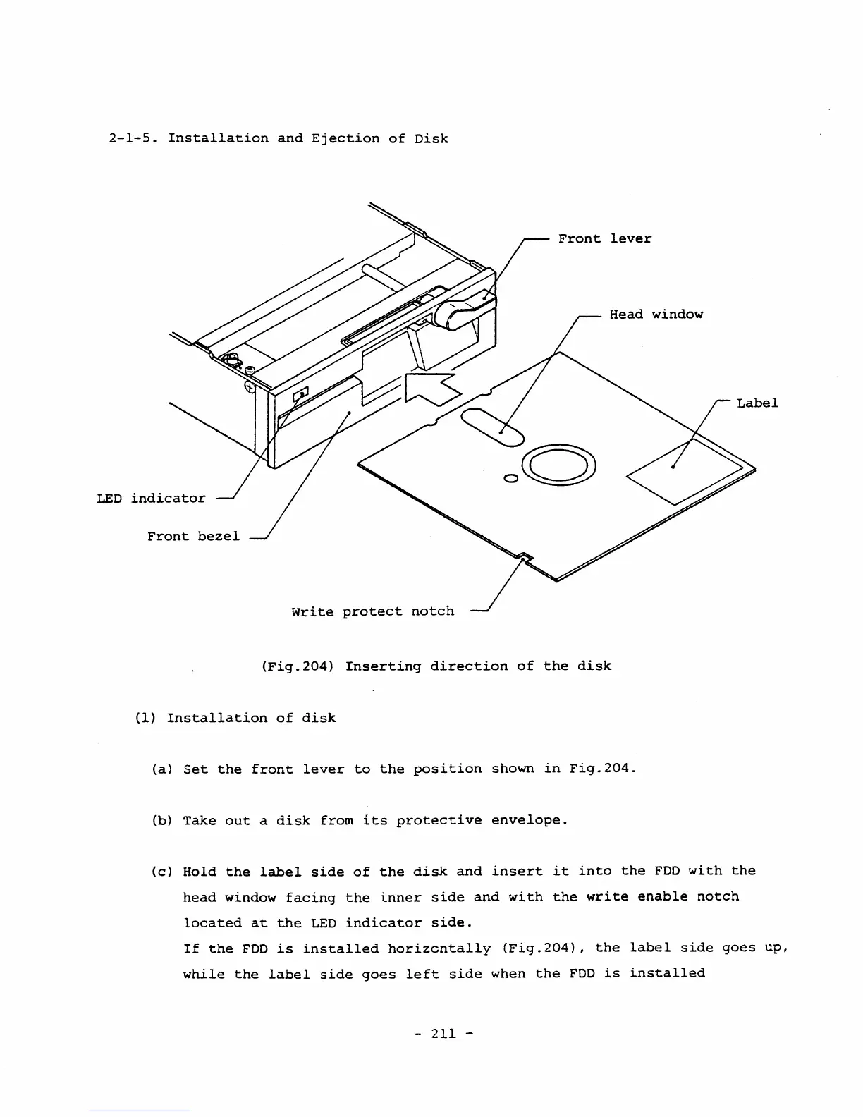 Teac FD-55 - 2-1-5. Installation and Ejection of Disk