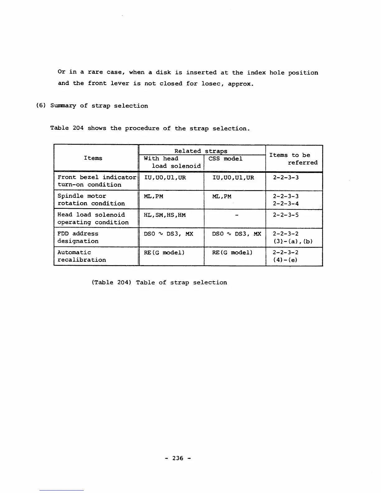 Teac FD-55 - Summary of Strap Selection; Table of Strap Selection