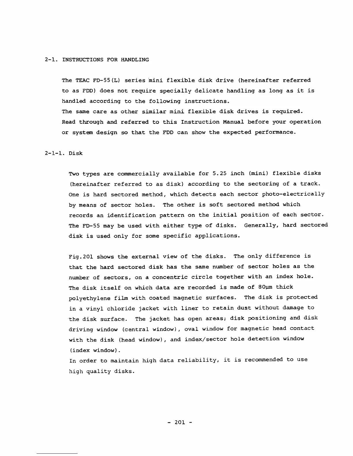 Teac FD-55 - 2-1. INSTRUCTIONS FOR HANDLING