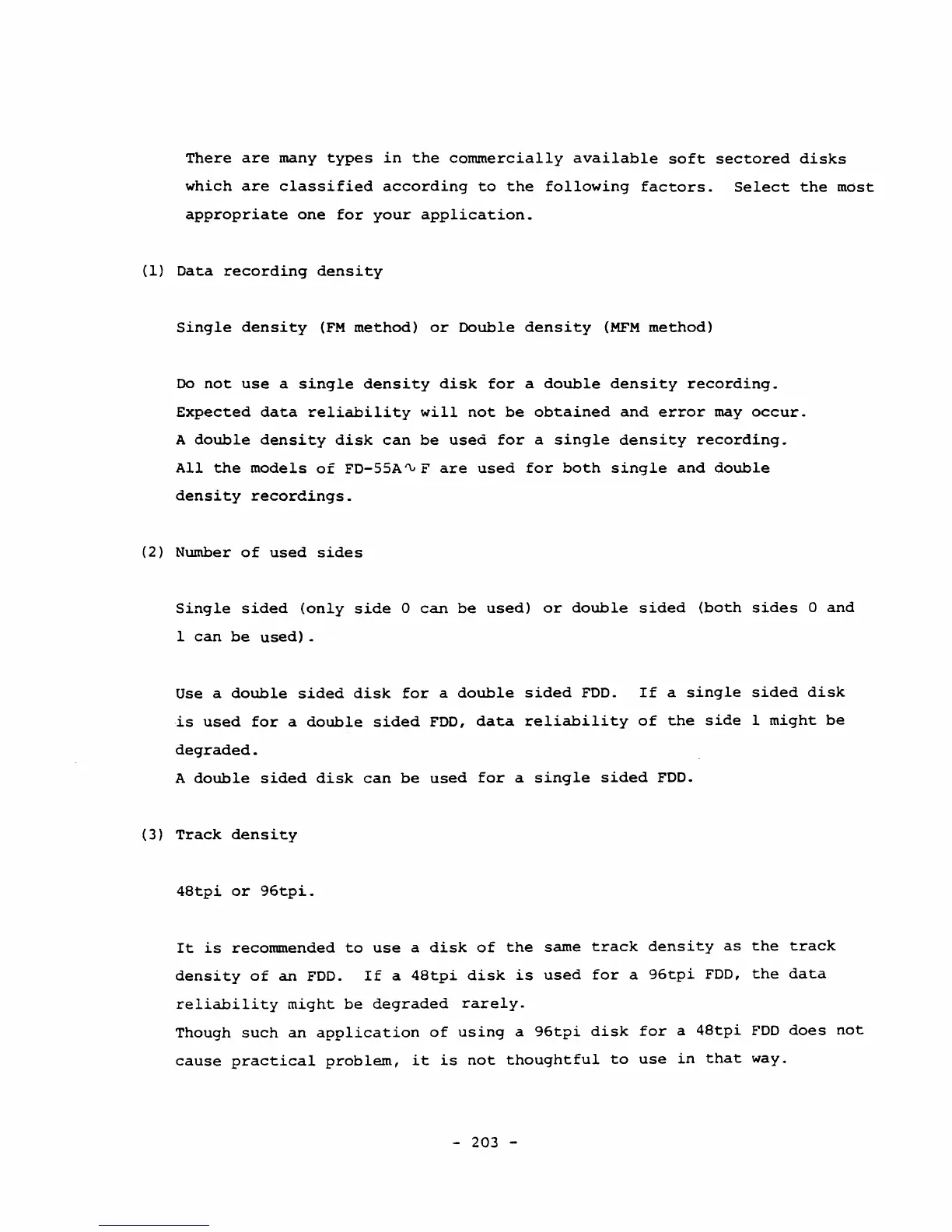 Teac FD-55 - Data Recording Density; Number of Used Sides; Track Density