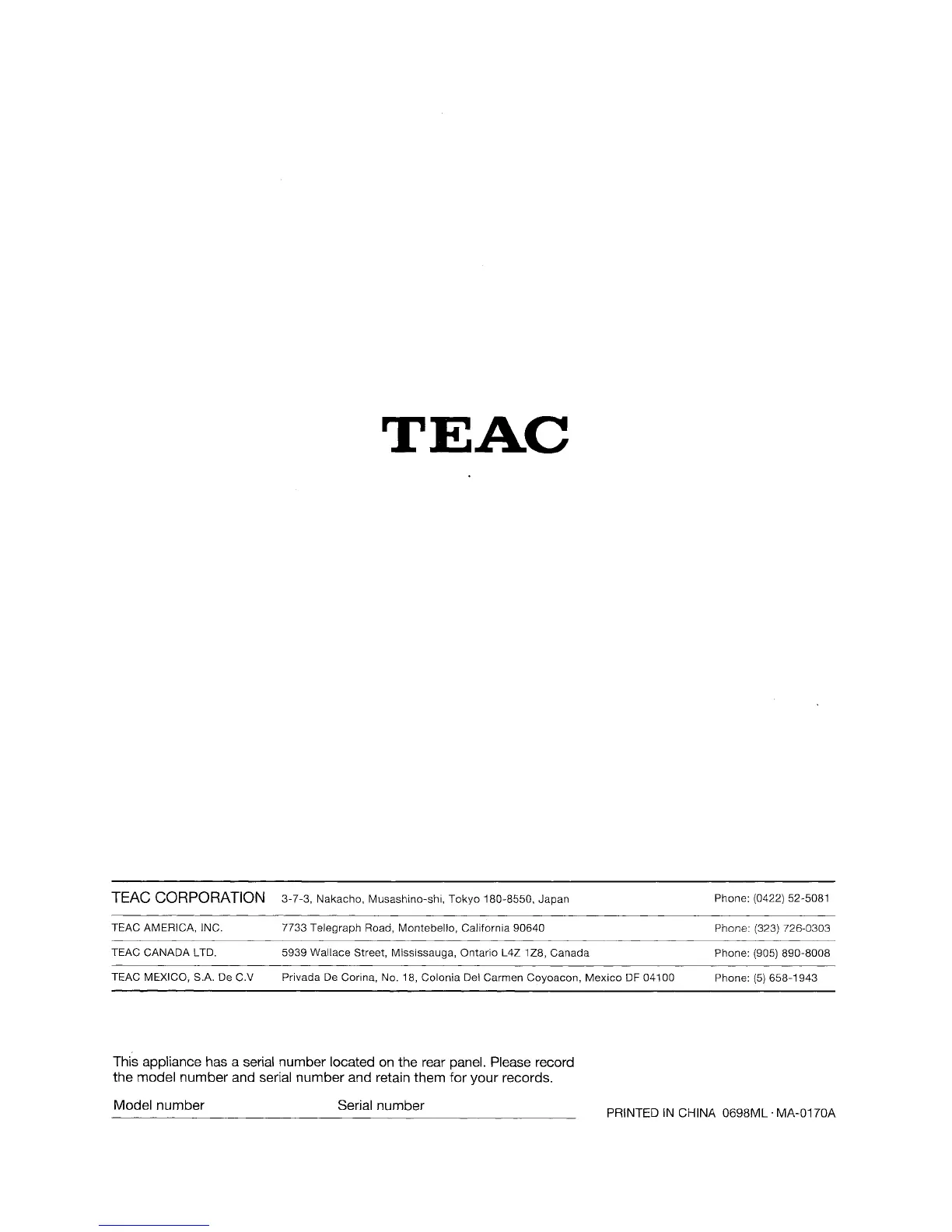 Other manuals for Teac GF-330