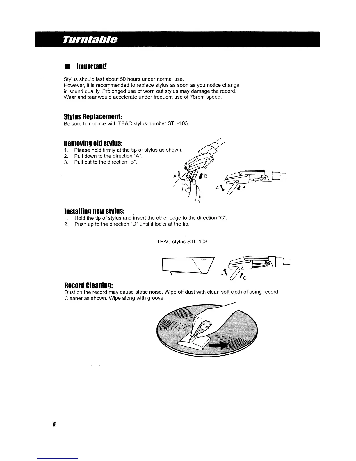 Teac GF-330 - Turntable System; Stylus Replacement and Care