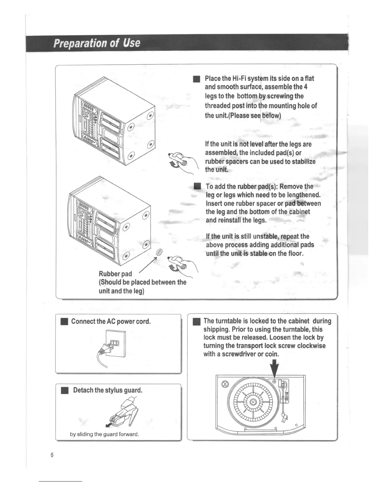 Teac GF-480 - Preparation of Use; Connect the AC Power Cord; Detach the Stylus Guard