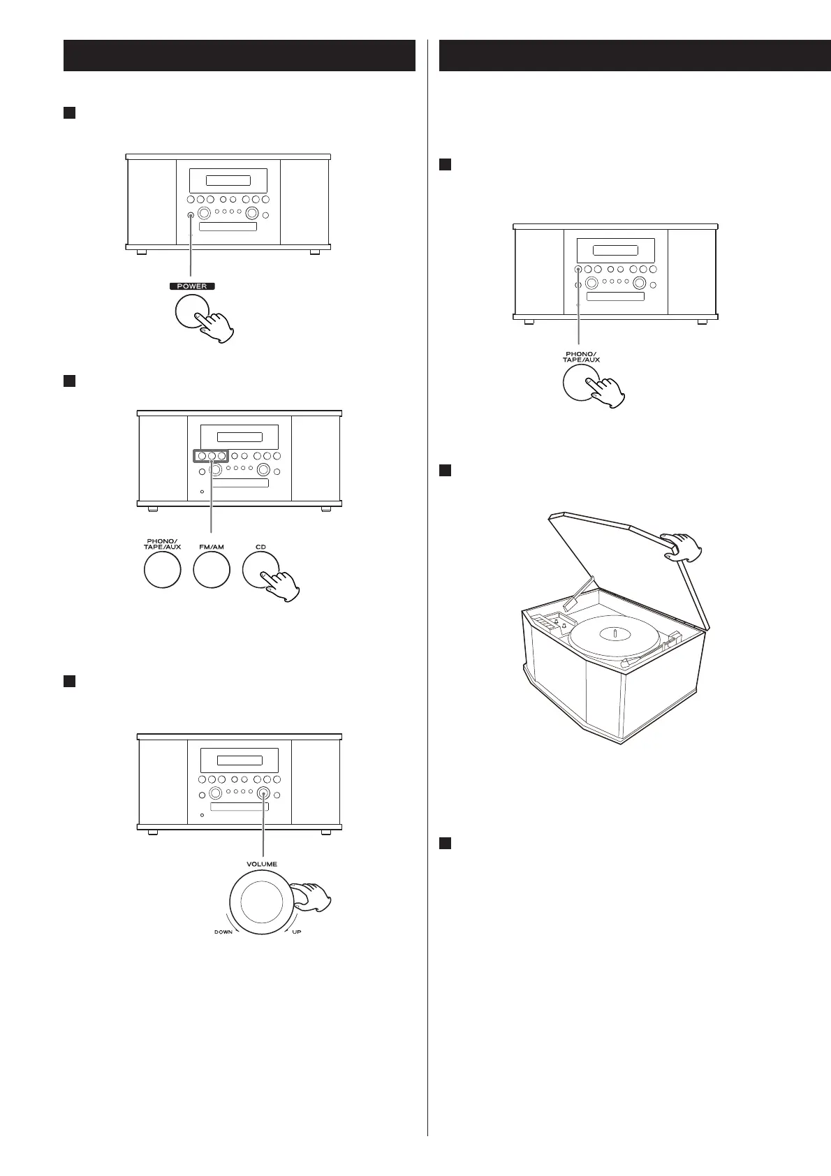 Press the PHONO/TAPE/AUX button once or twice to select