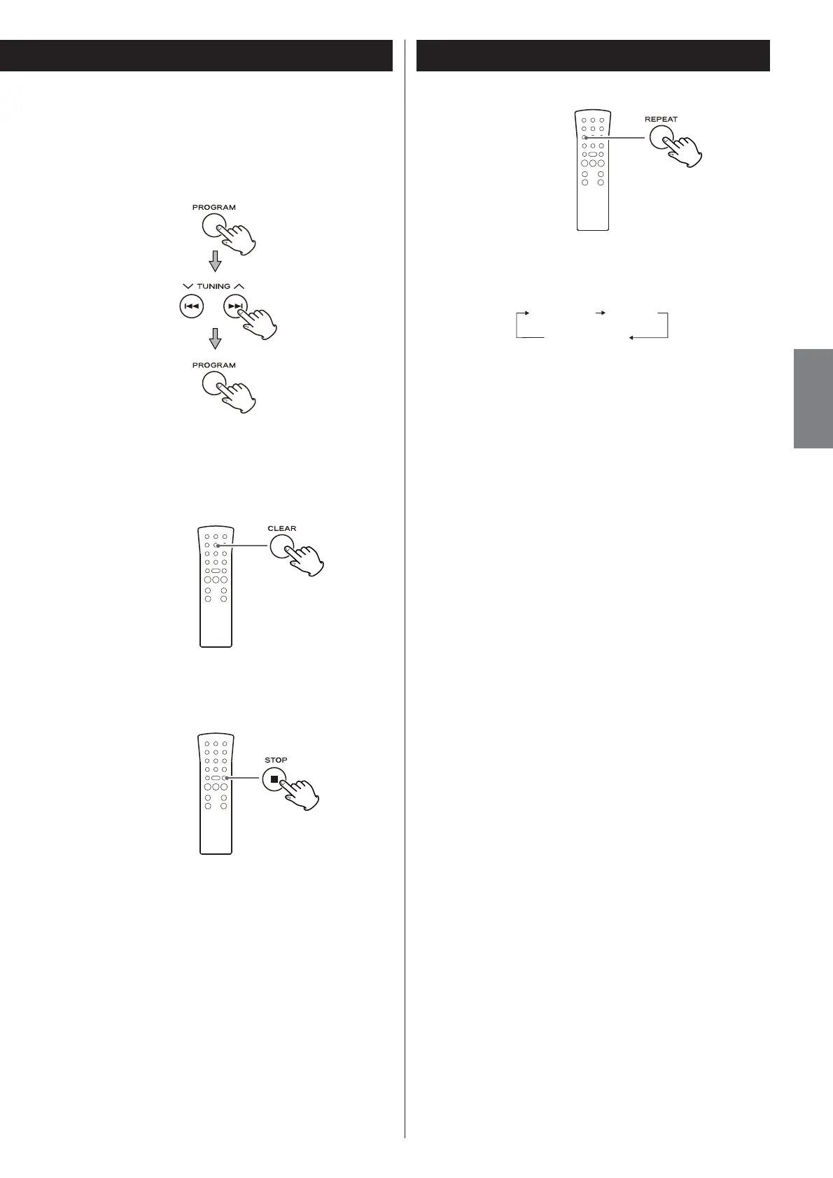 Each time the REPEAT button is pressed, the repeat mode is changed