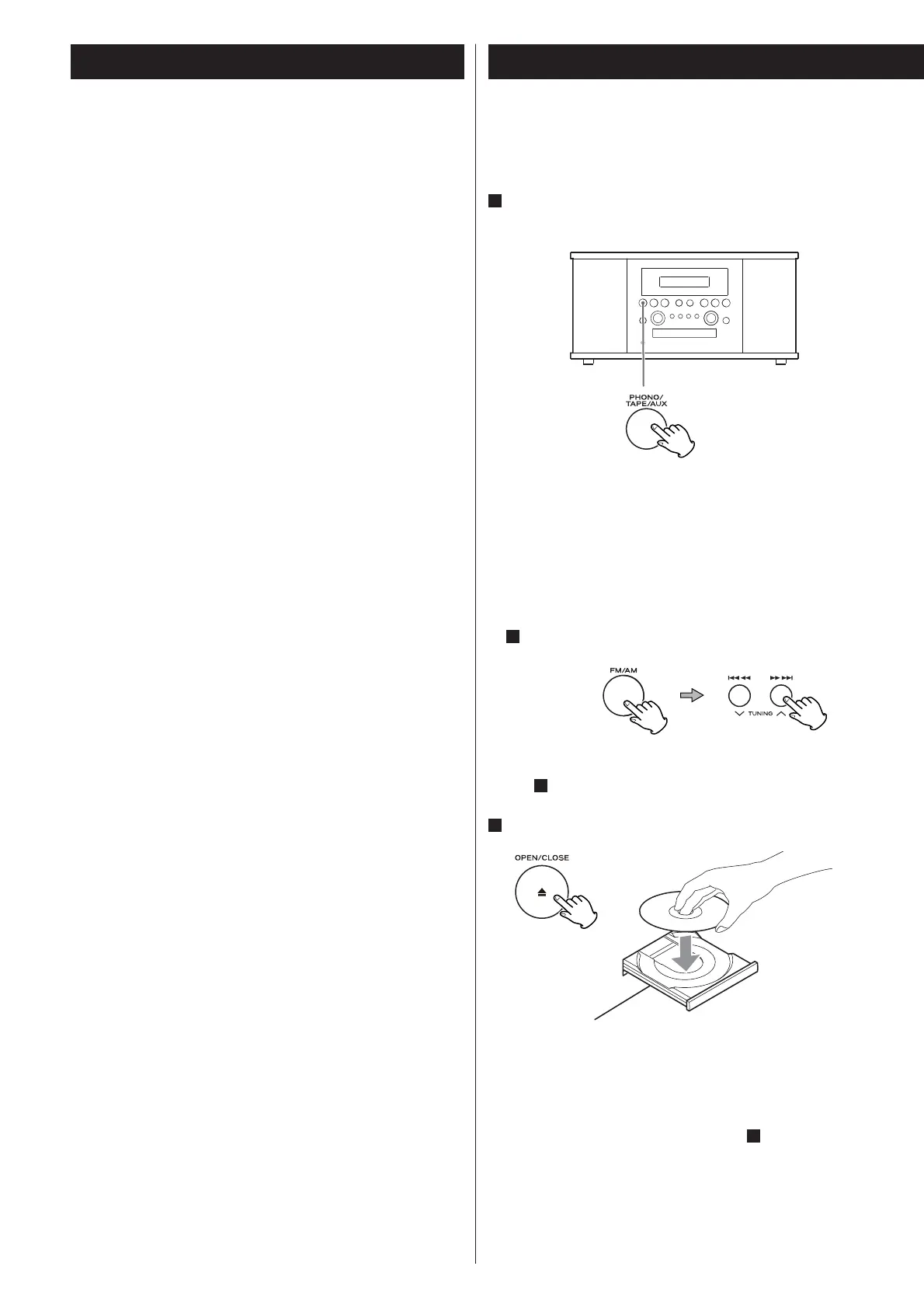 Press the PHONO/TAPE/AUX button or the FM/AM button