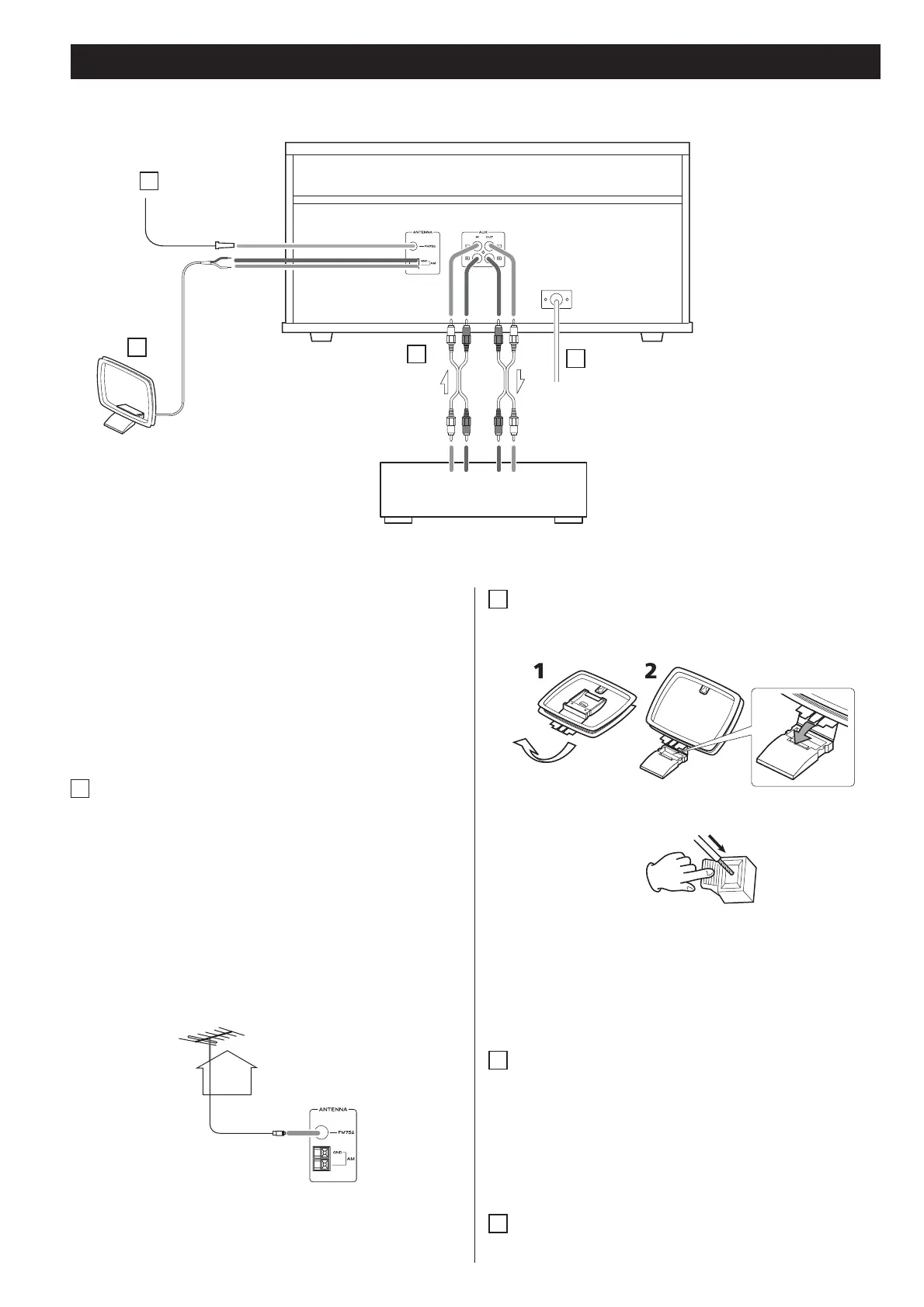 Branchez les extrémités de l’antenne cadre aux prises d’antenne