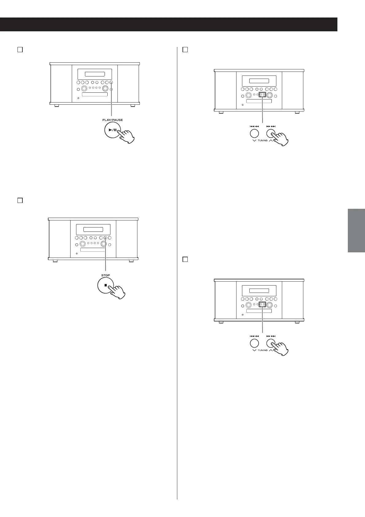Appuyez sur la touche PLAY/PAUSE (y/J) en lecture.