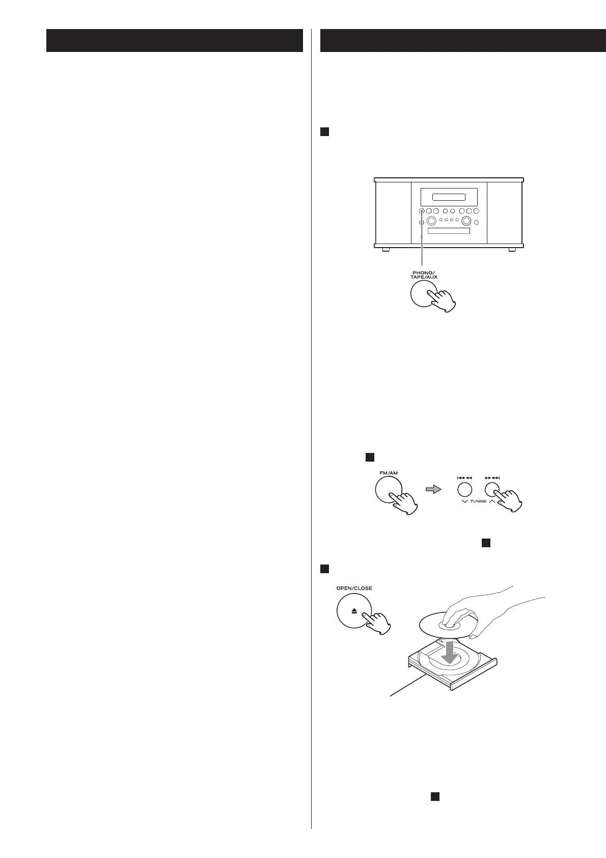 PHONO/TAPE/AUX ou sur la touche FM/AM pour