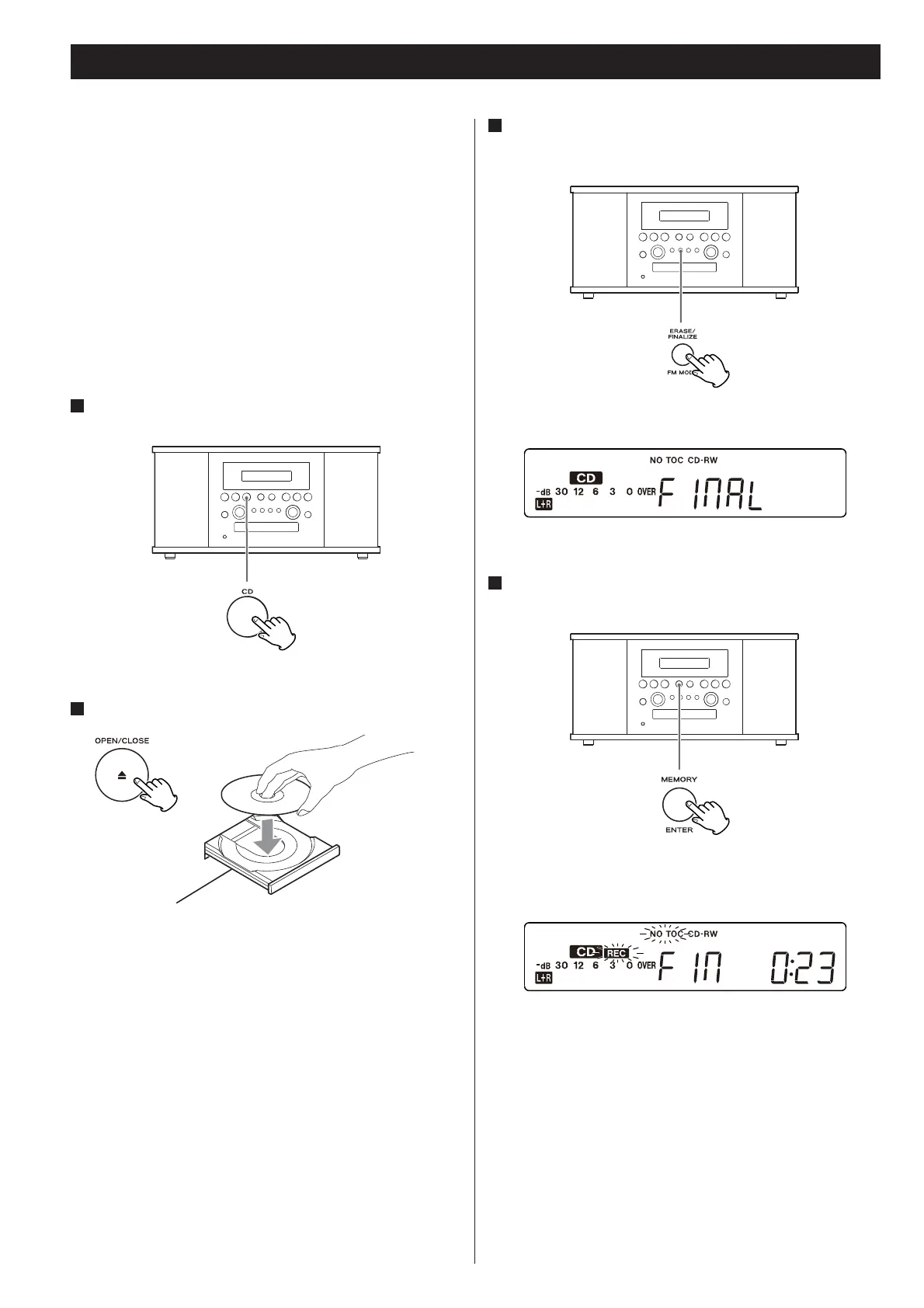 Appuyez sur la touche ERASE/FINALIZE en mode arrêt.