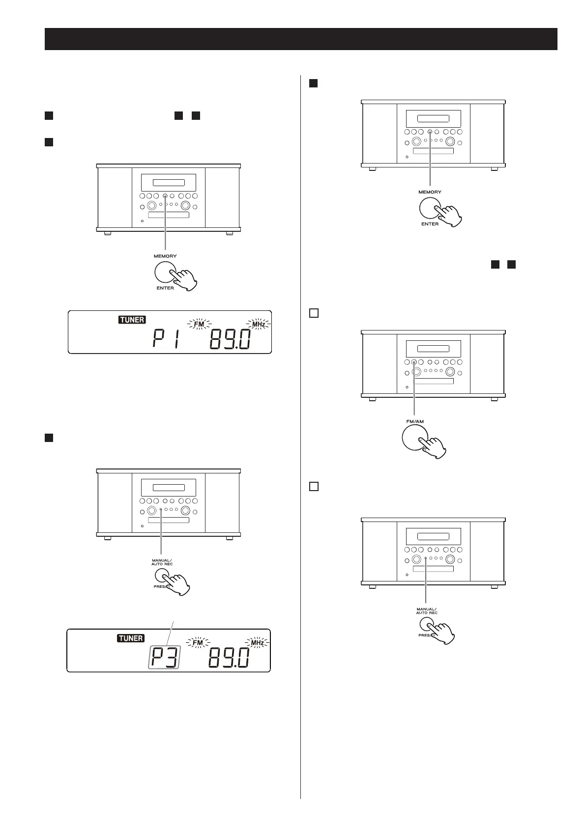 “FM” y “MHz”, o “AM” y “kHz” comienzan a parpadear.