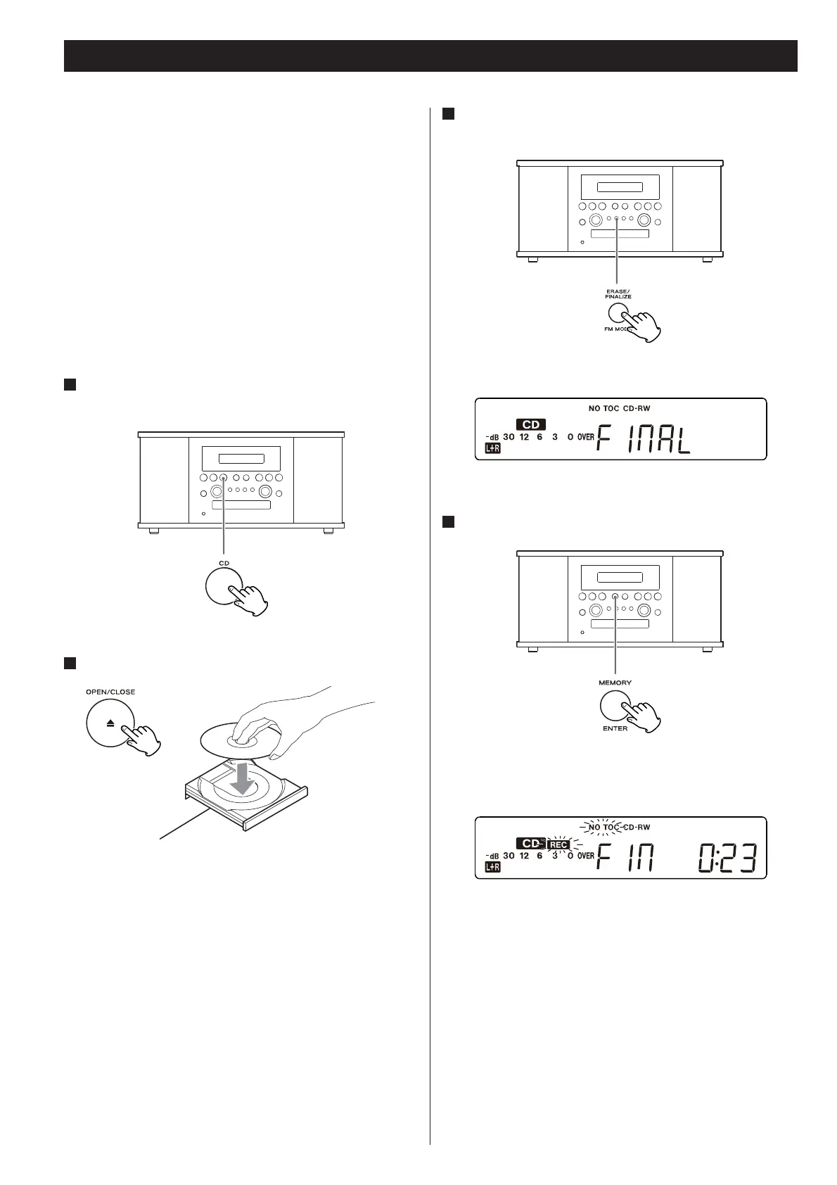 Pulse el botón ERASE/FINALIZE en el modo de parada.