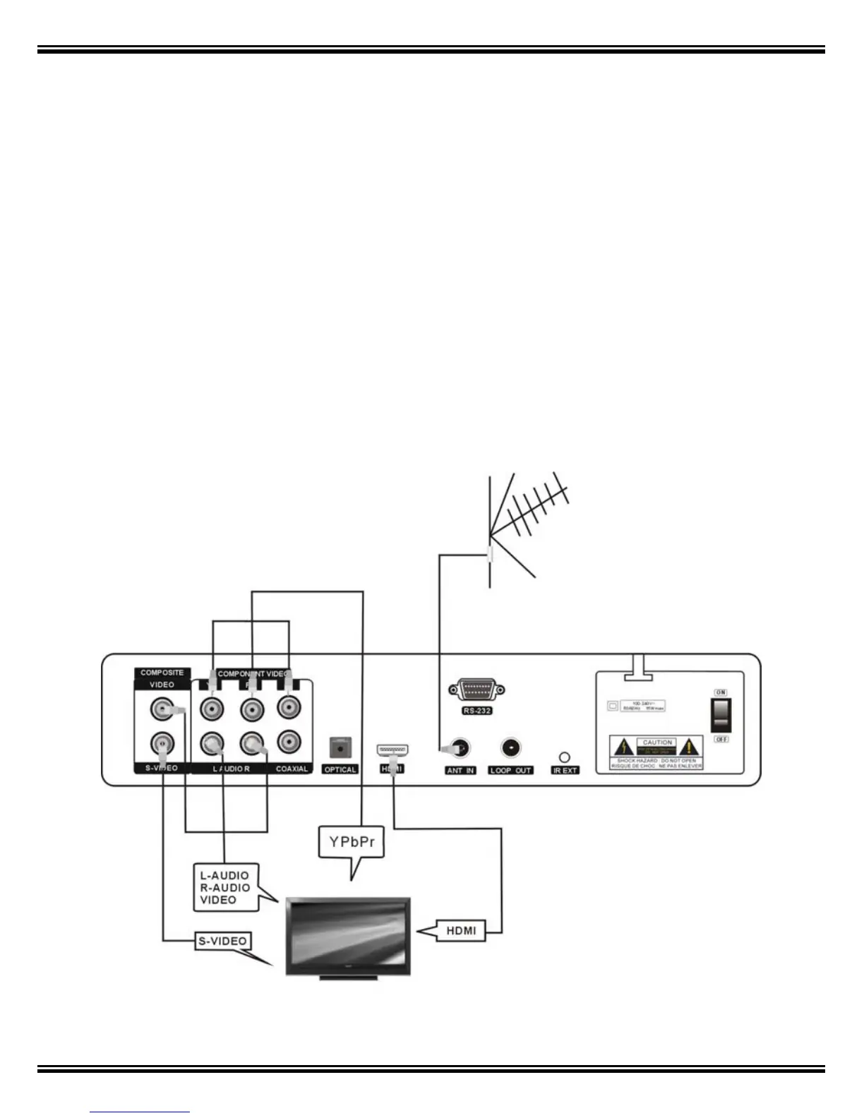 Connect a functional TV Antenna to “ANT IN” for your local TV channels.
