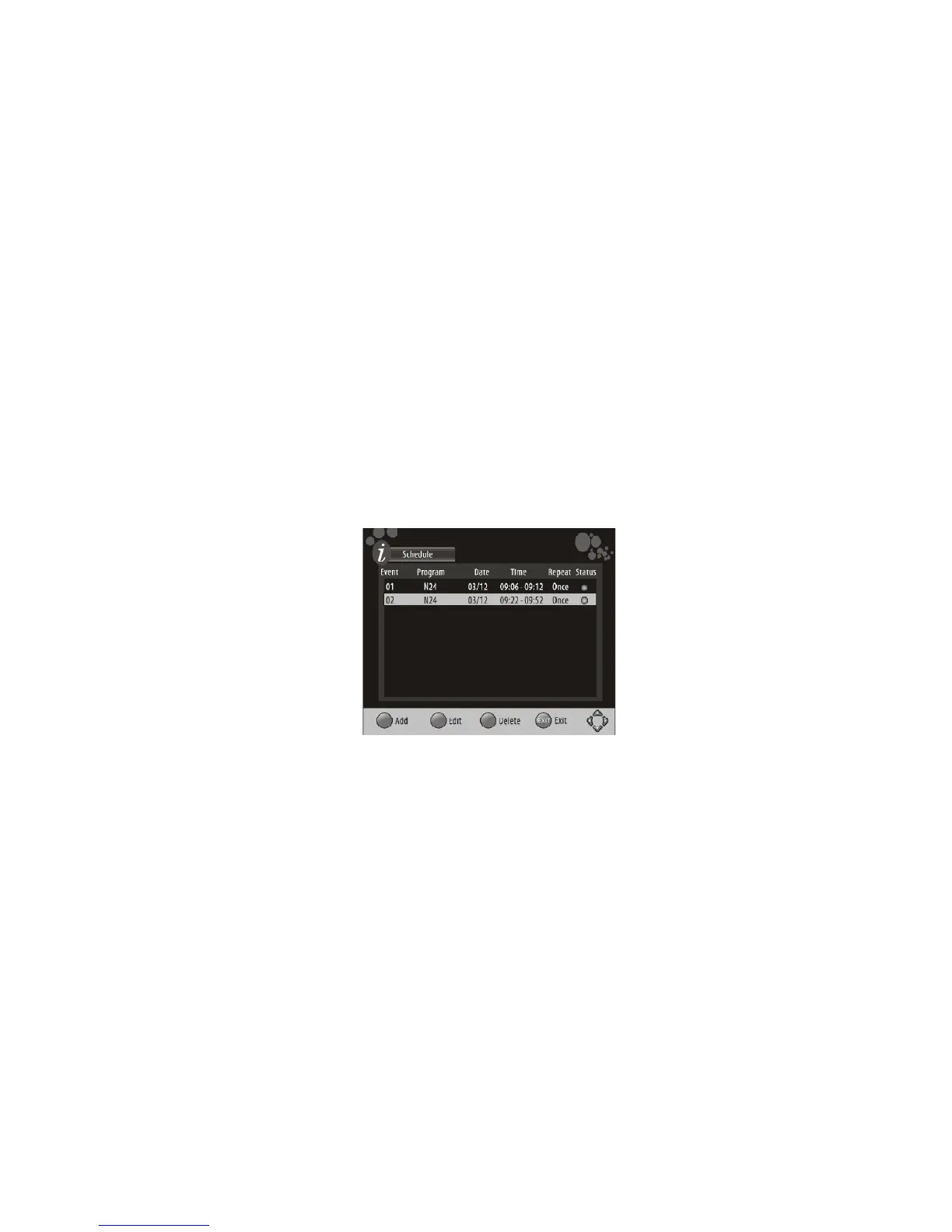 button) schedules on the list. Press EXIT to exit the record schedule list.
