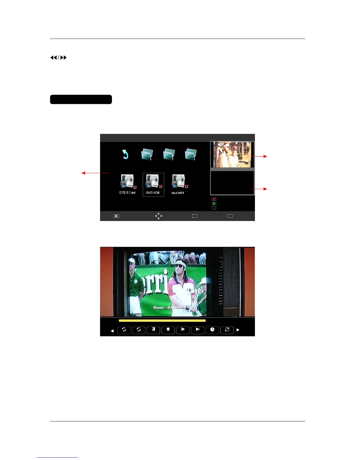Enter the movie menu and scroll through the files using the ◄►▲▼ keys.