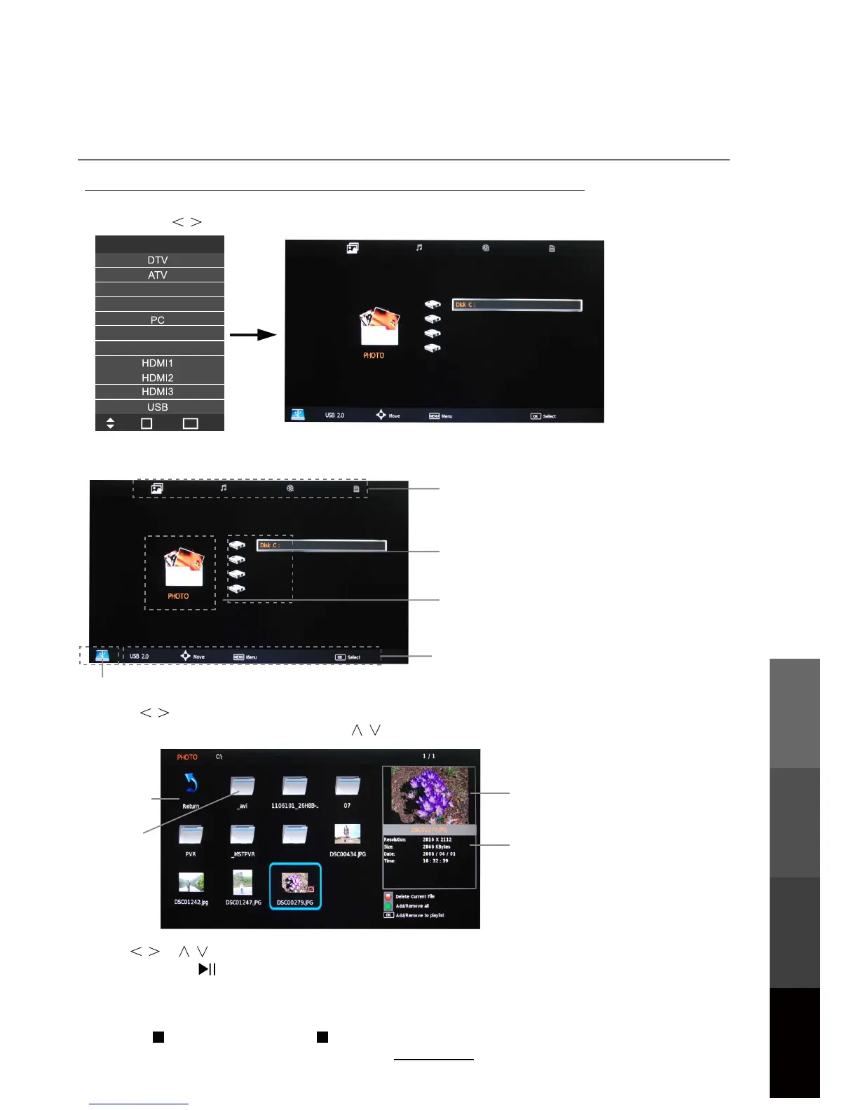source by the buttons, and press the OK button to enter the Multimedia menu as illustrated below.