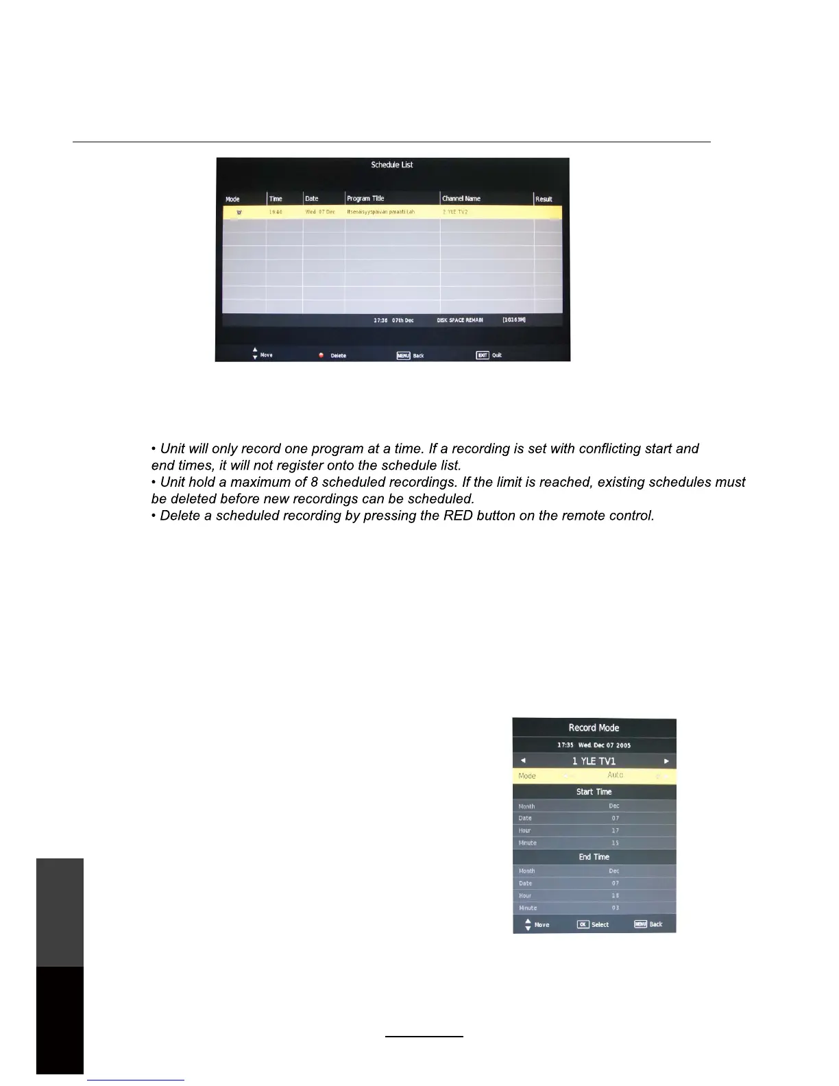 After the recording has been done, the stored programs can be viewed through a Recorded List by