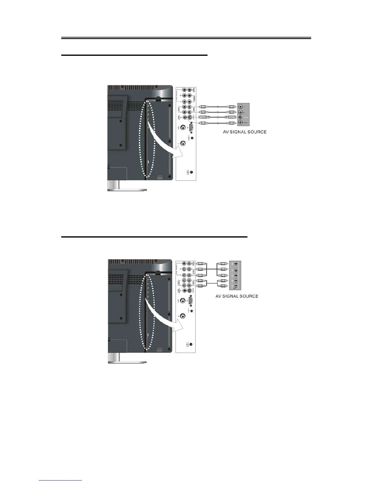 Use the AV cables to connect external AV signal source to AV input jacks on the jack panel of the