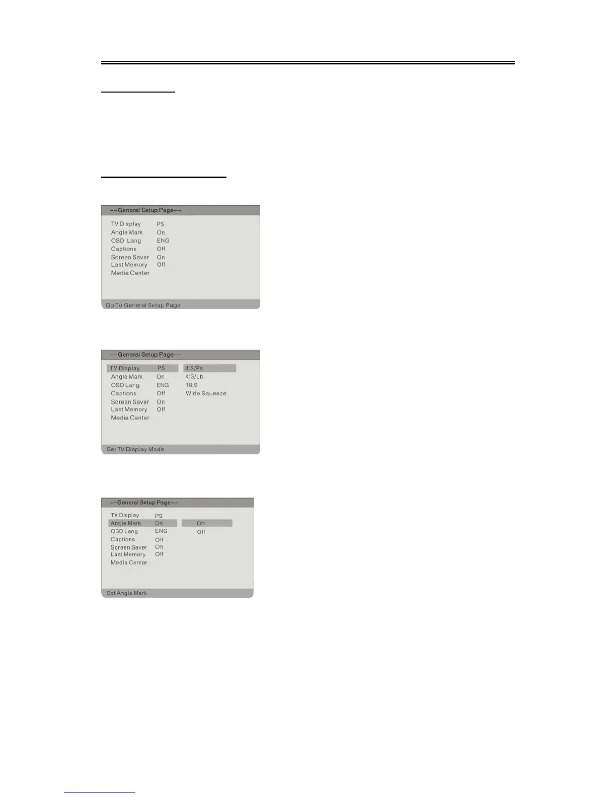 Press the SETUP button to enter the General setup menu. The screen will display as the below: