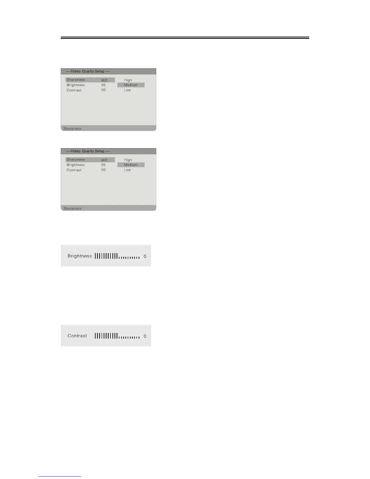 Select Quality, press the ENTER button to enter the menu as below:
