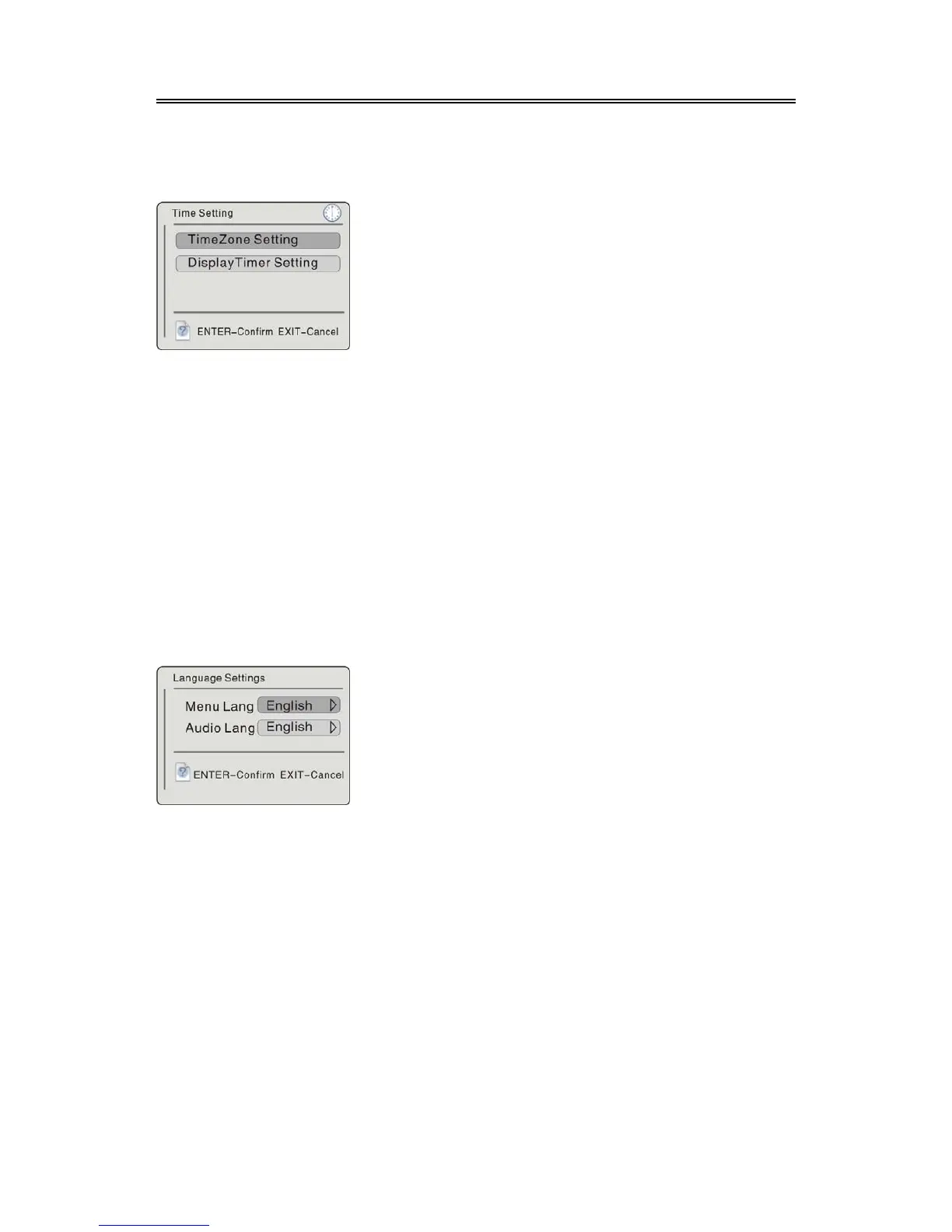 the ENTER button to confirm selection and return. During setting, press the EXIT button to