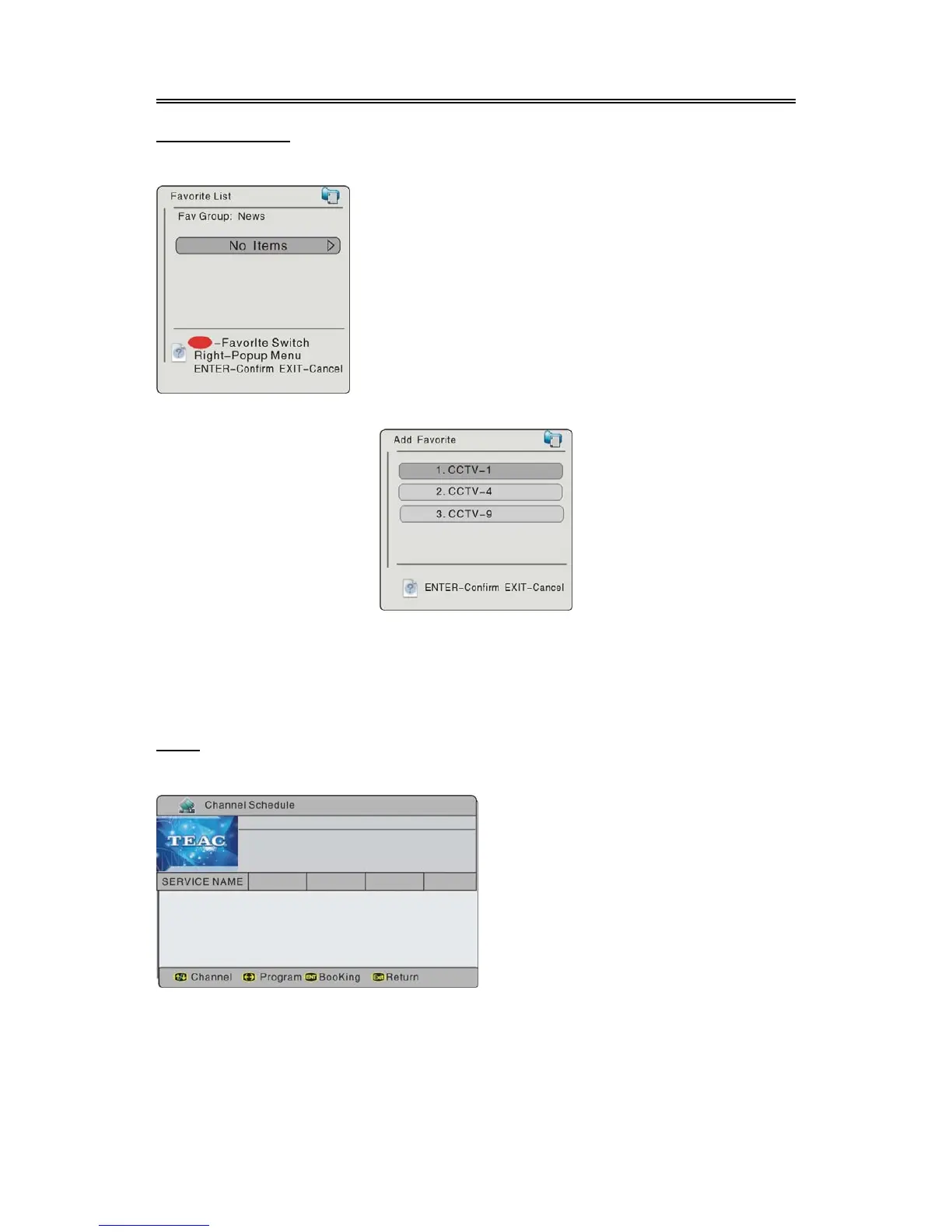 channel list, and add the channel into the favorites list. You can also delete the channel from the