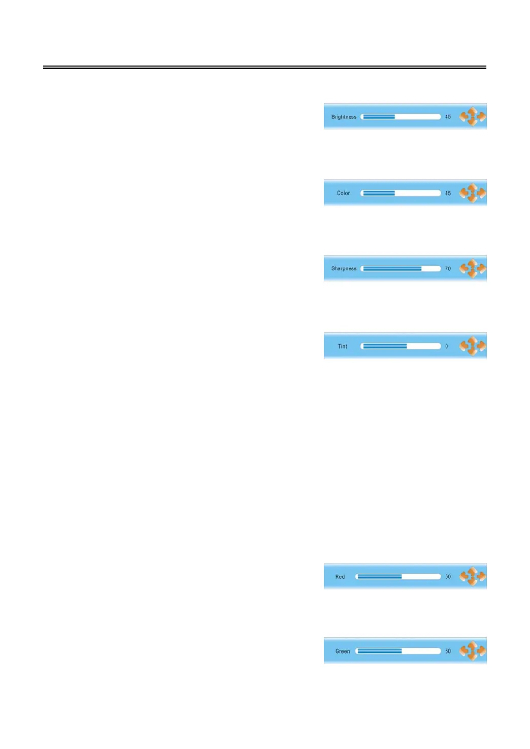 Within the adjusting bar, you can select Contrast, Brightness, Color, Sharpness and Tint by