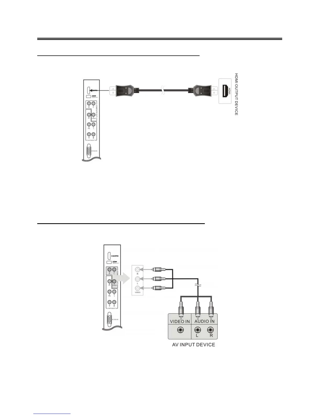 Use the AV cables to connect the external AV input device to the AV output jacks on the rear panel