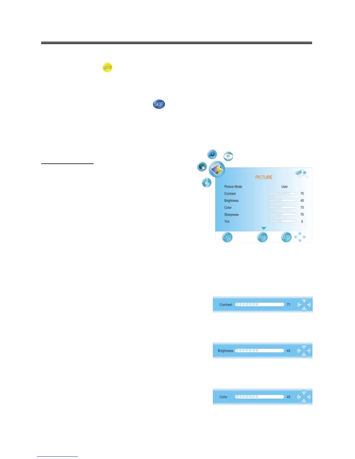 ◄► button to adjust the difference between the brightest and darkest regions of the picture.