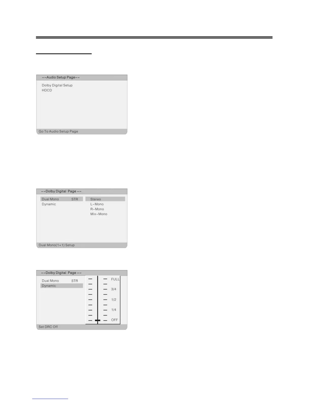 Press the ▲▼ direction buttons to select Dolby Digital in the Audio Setup Page and press the